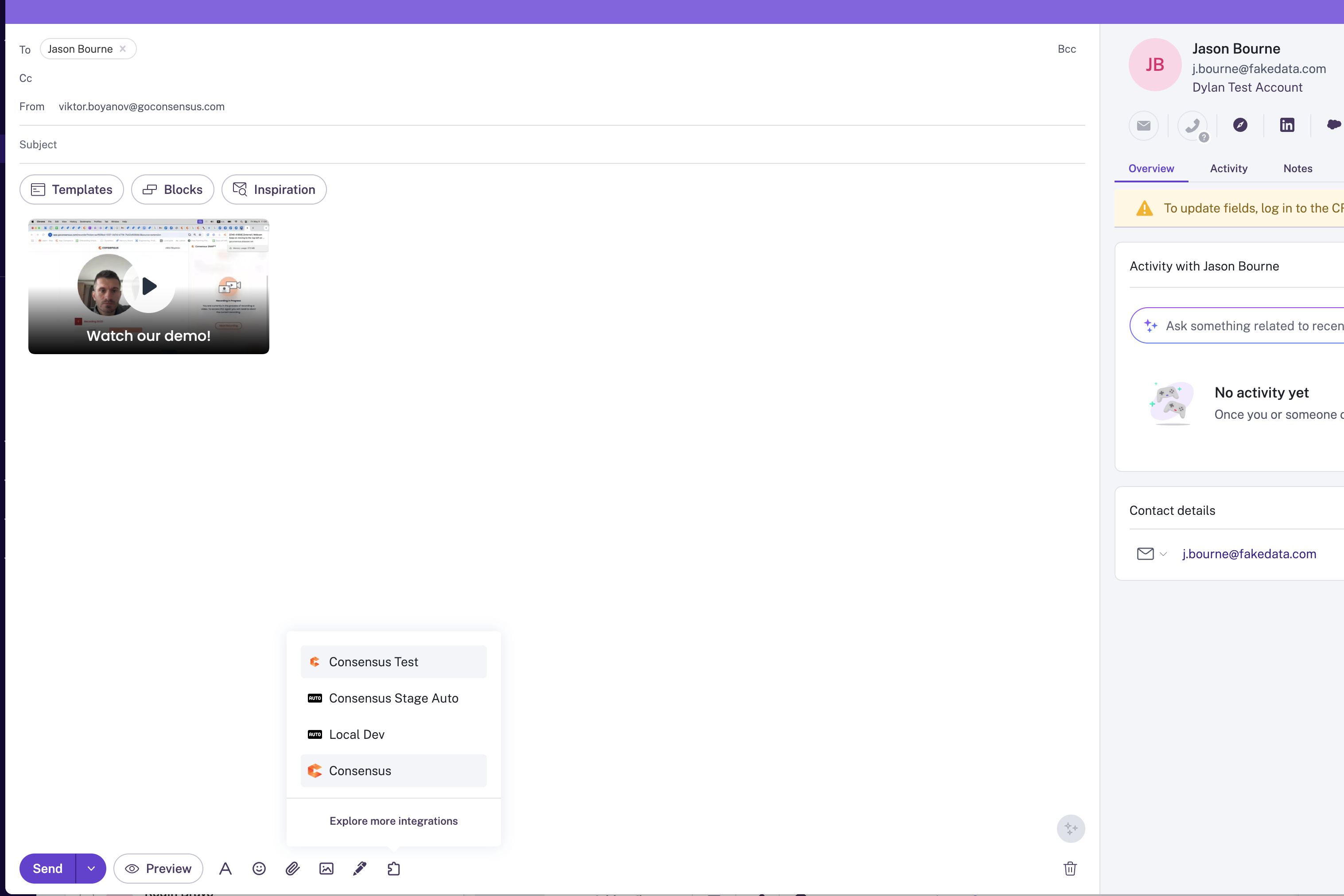 The integration allows you to quickly and easily create DemoBoard links directly in Gong and embed them within your emails.