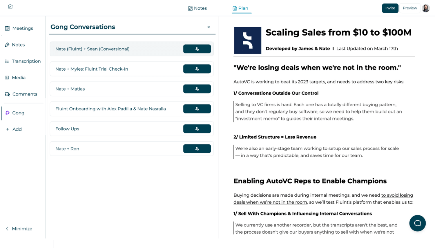 Fluint understands and uses the nuance of each buyer’s own words so  content sounds like they wrote it themselves. Use proven frameworks for business cases, exec summaries, mutual action plans, mid-funnel emails, and more - with Gong Transcript Data in Fluint.