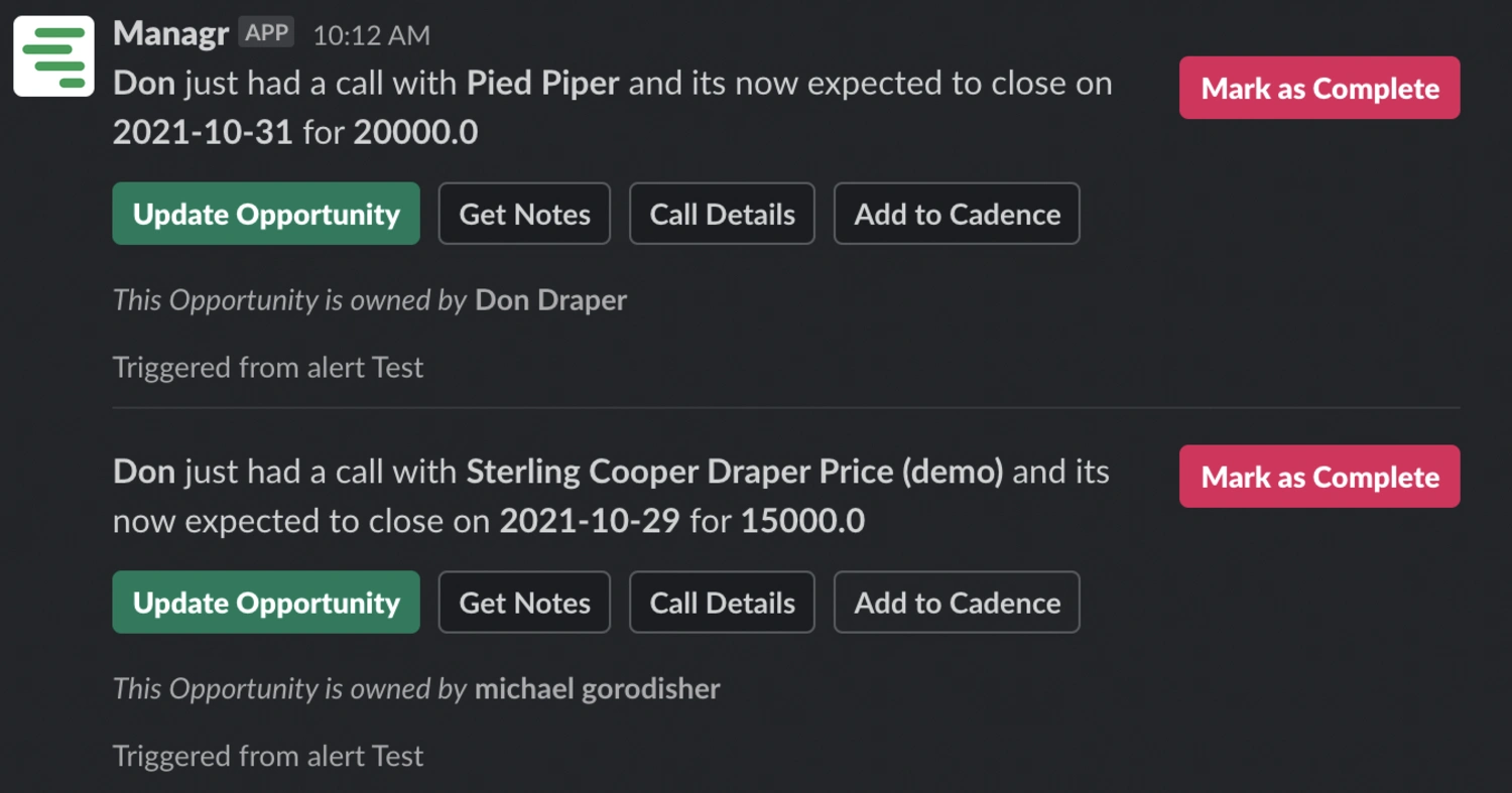 Leverage Gong Data and Managr workflow automations to bring Slack notifications to the right people at the right time.