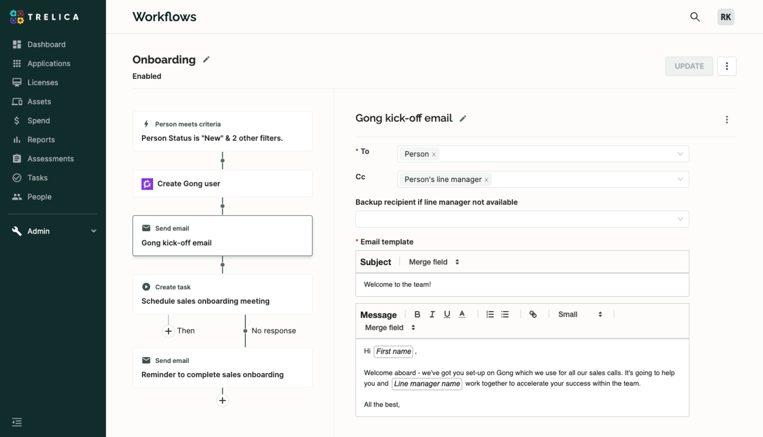 This integration enables new team member provisioning, profile or permission updates, and profile deactivation in Gong from Trelica.